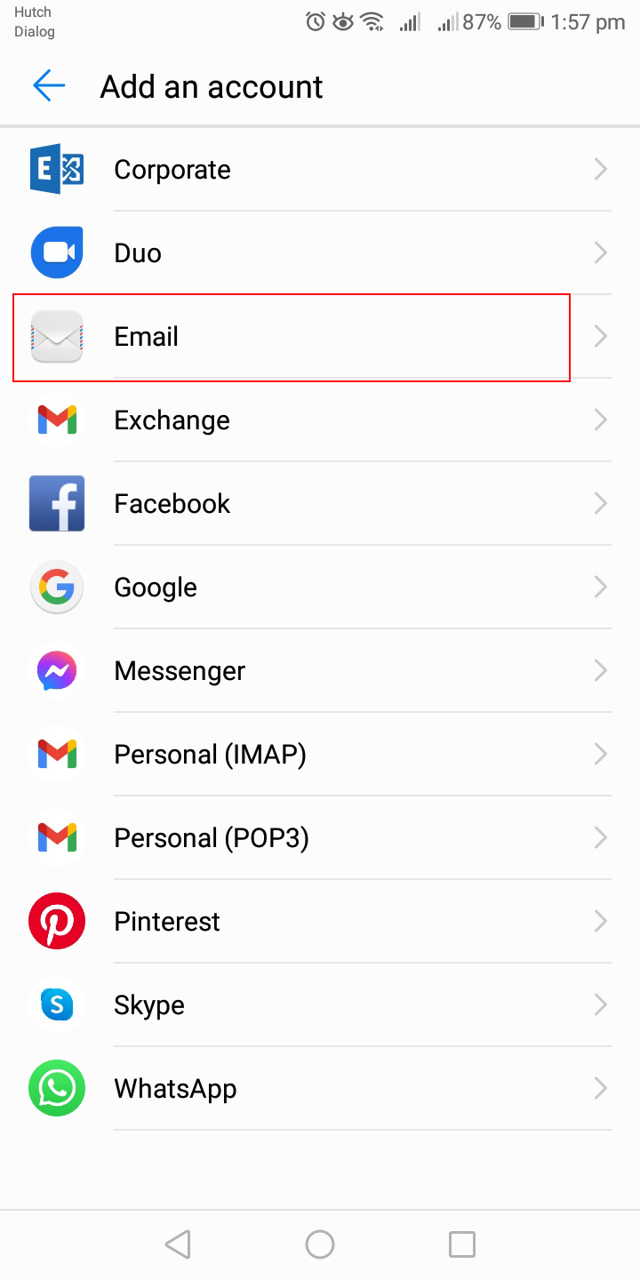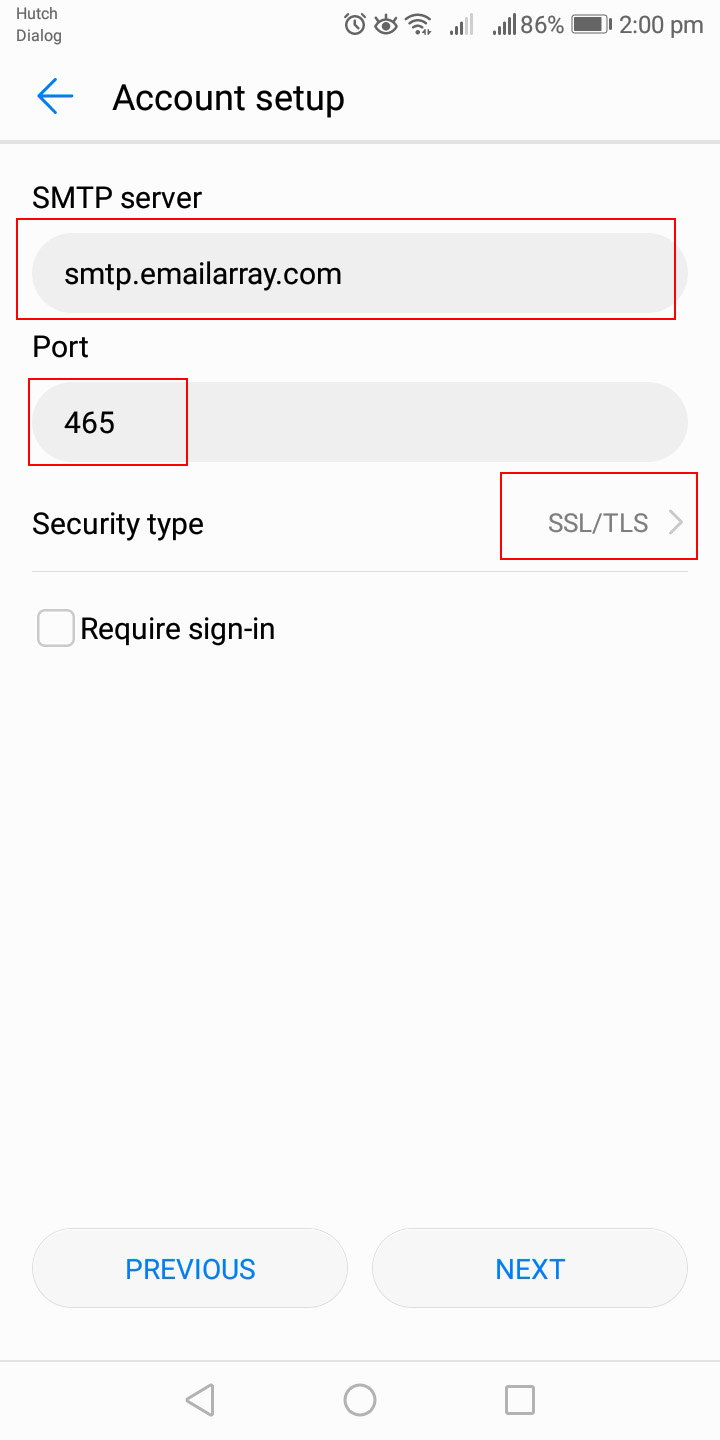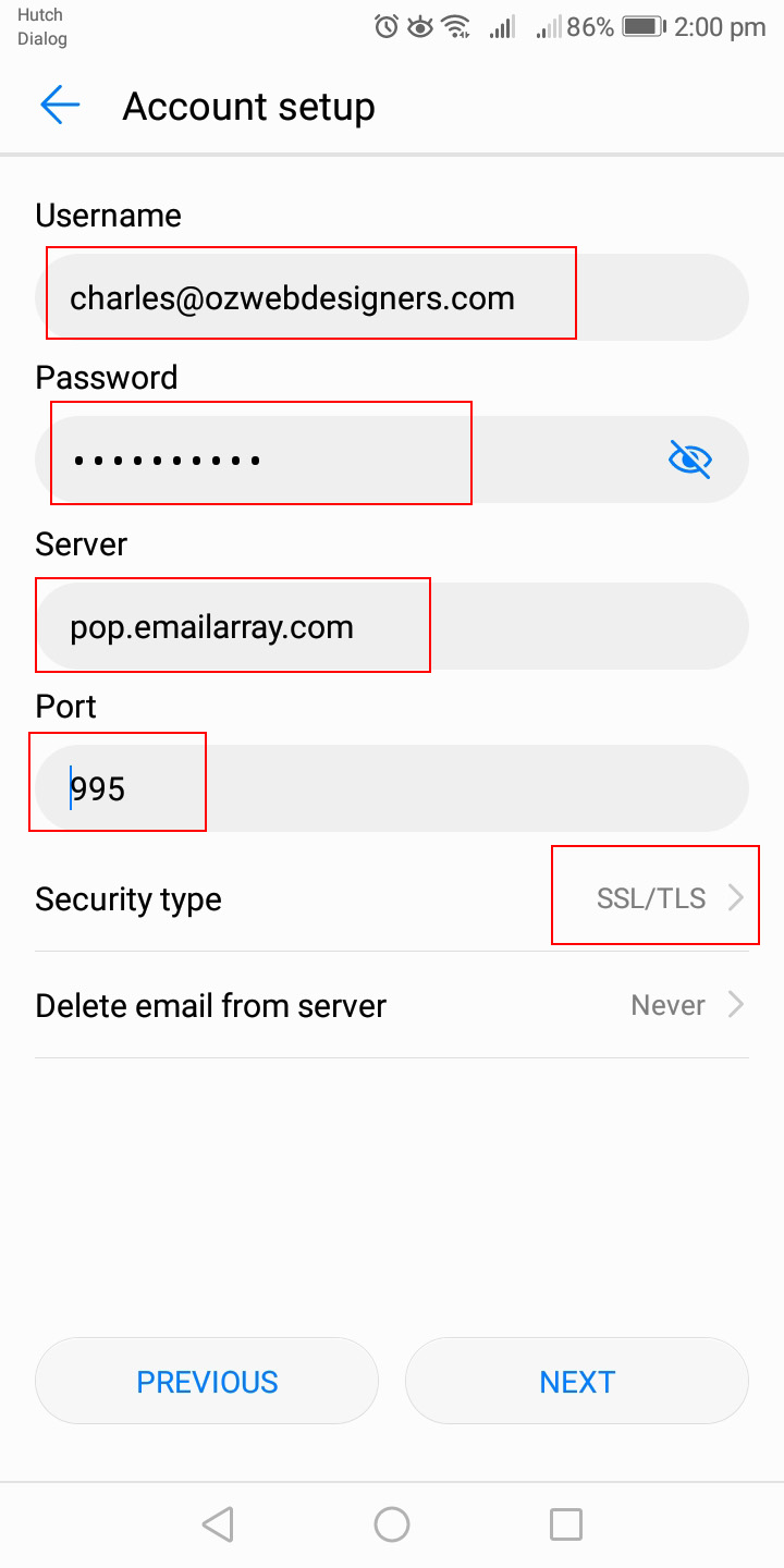 Email Array - Android POP3 Settings