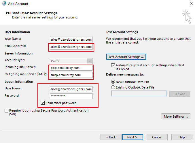 pop.emailarray.com 995 smtp.emailarray.com 465